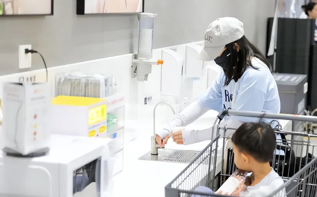 虽说没有一比一完全复制胖东来,但也可以说是大差不差了。比如会在超市门口添加宠物寄放处、增加取冰处以及饮水机,甚至贴上了对顾客的承诺的海报,同时也引进了不少胖东来的产品。
